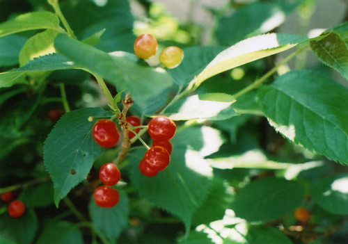 赤く染まった小さなさくらんぼ