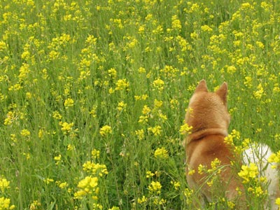 犬と菜の花の写真