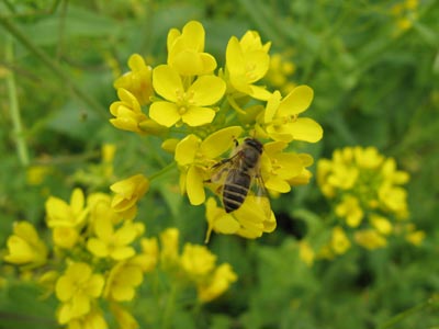 菜の花とミツバチの写真