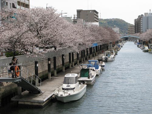 高知市の堀川沿いにて